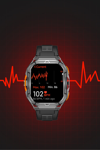 24-Stunden-Überwachung von Herzfrequenz, SpO₂ und Stresslevel. Mit Warnmeldungen bei zu hoher/niedriger Herzfrequenz, niedriger Sauerstoffsättigung und bei langer Inaktivität. Inklusive Schlafanalyse und Menstruationszyklus-Tracking – für umfassendes Wohlbefinden.